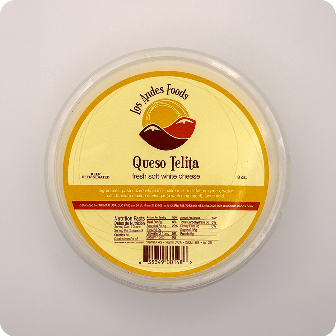 Telita cheese is creamy, juicy, soft, and elastic. Perfect for filling arepas or accompanying toast, salads, or on a cheese board. Total Weight: 8 oz. Ready-to-eat